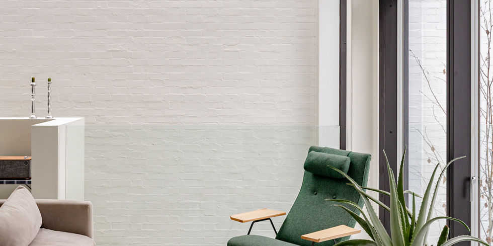 The beauty of it is that the house feels simple, uncluttered, and peaceful. The architect, Brinkworth, did a superb job of marrying simplicity and beauty, using geometry and light to frame different views throughout the property. The descent to the lower ground floor is divine, with two different coloured brick walls, a sloping glass roof, and steel beams splitting the levels that look out to the lush green of Hampstead.